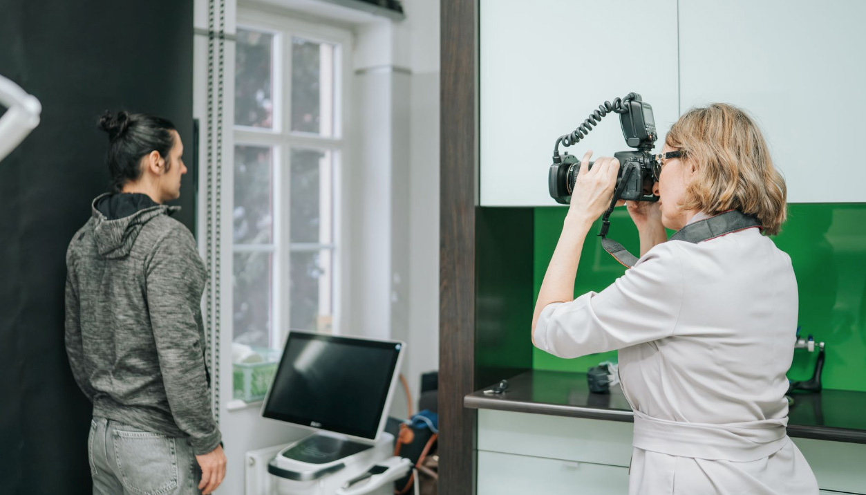 Przygotowując plan leczenia z zakresu stomatologii estetycznej, dokonujemy szczegółowej analizy potrzeb naszych Pacjentów. Przeprowadzamy wywiad, badamy zęby, dziąsła, zgryz, robimy zdjęcia fotograficzne, aby jak najlepiej zaprojektować nowy uśmiech. Analiza twarzy, układu warg, policzków i dynamika uśmiechu, zarejestrowana podczas wykonywania zdjęć i krótkich filmów, pomaga w tworzeniu nowych, naturalnych i dopasowanych dla danego Pacjenta zębów.